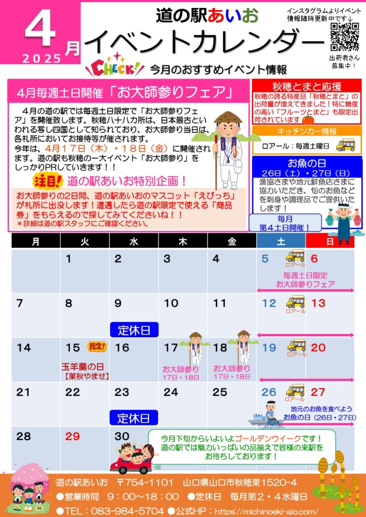 4月のイベントカレンダーです